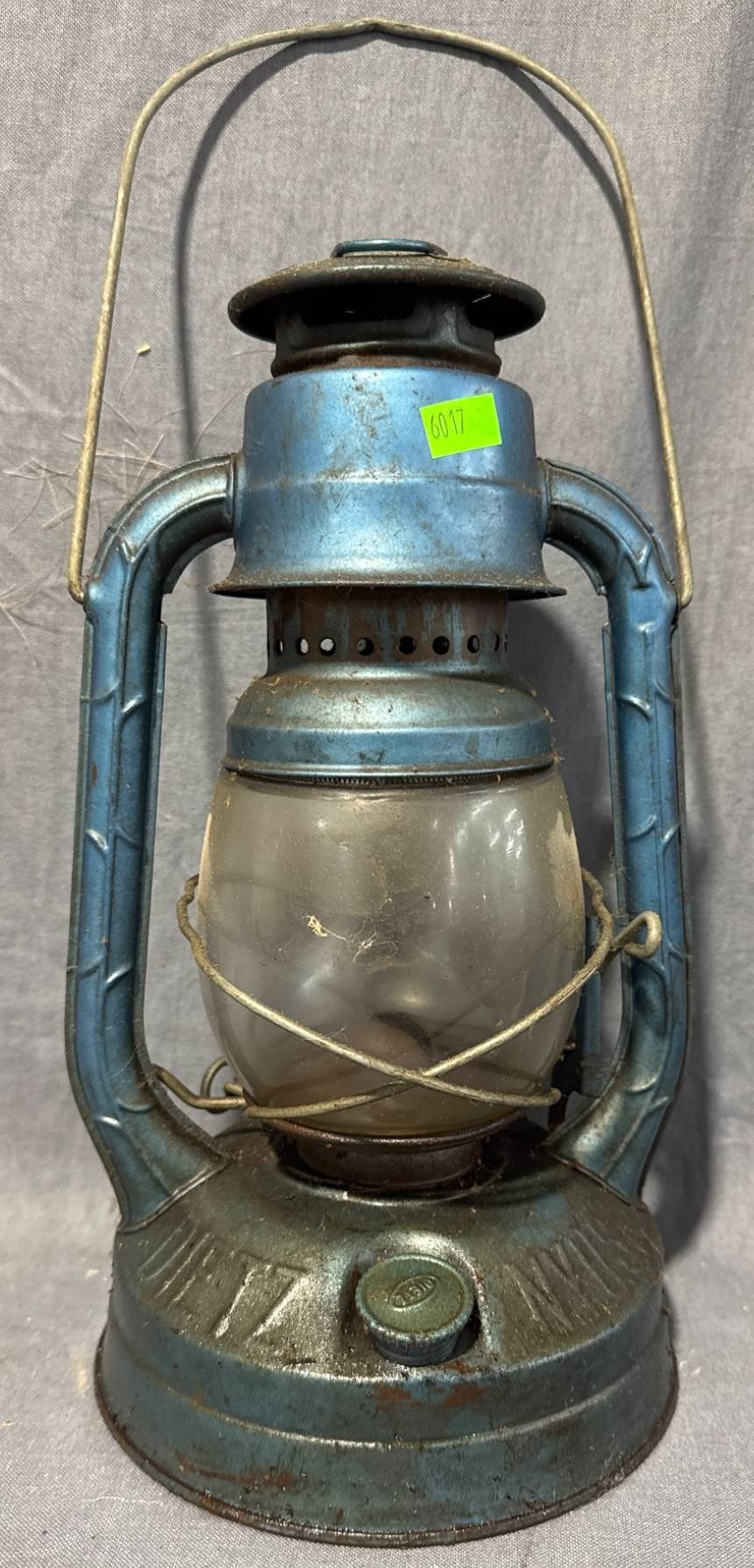 6017 Blue Dietz Little Wizard Railroad Lantern with Clear Globe, 16”