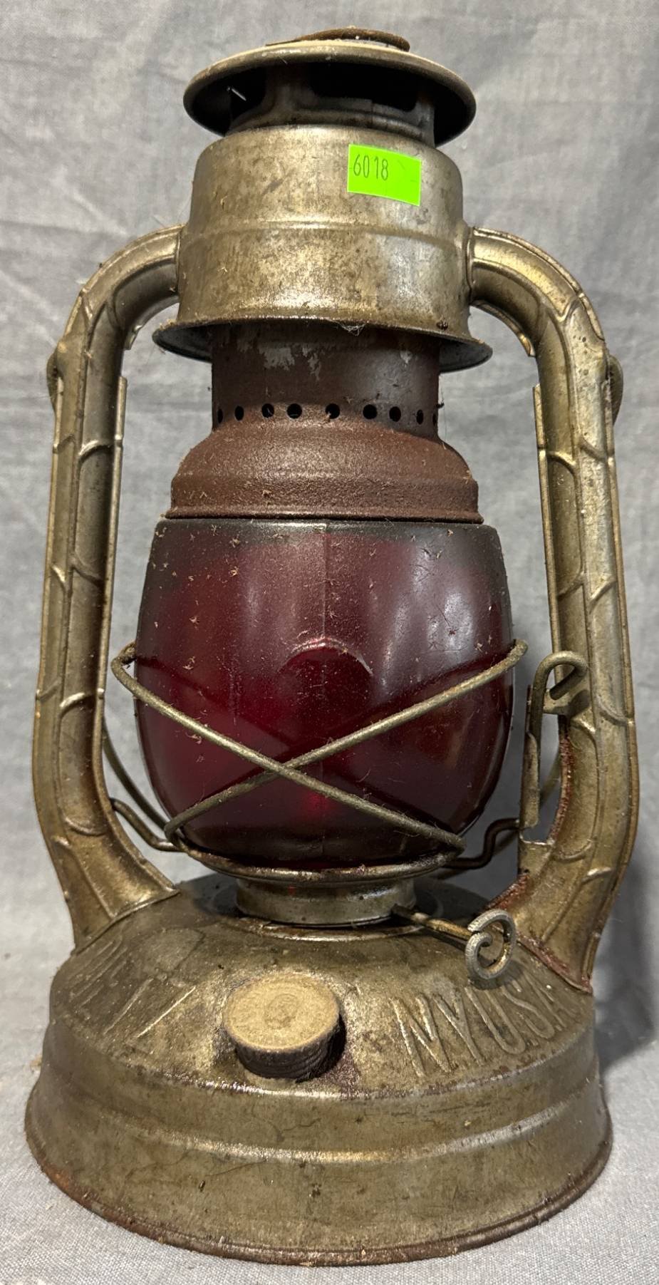 6018 Dietz Little Wizard NY USA Railroad Lantern with Red Glass Globe, 11”