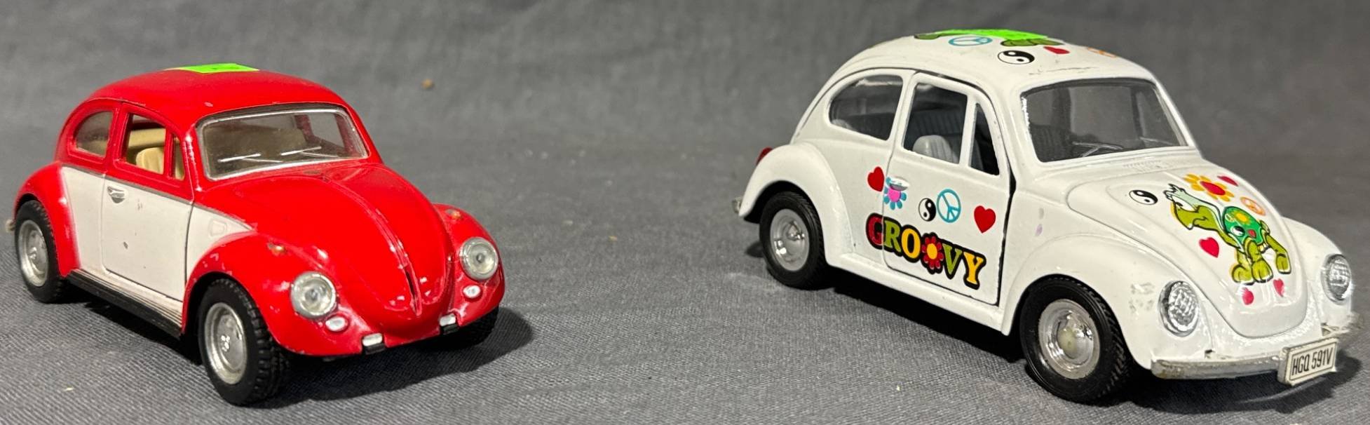 6020 2 Volkswagen Beetle Die Cast Cars by Maisto, 7”, 9”