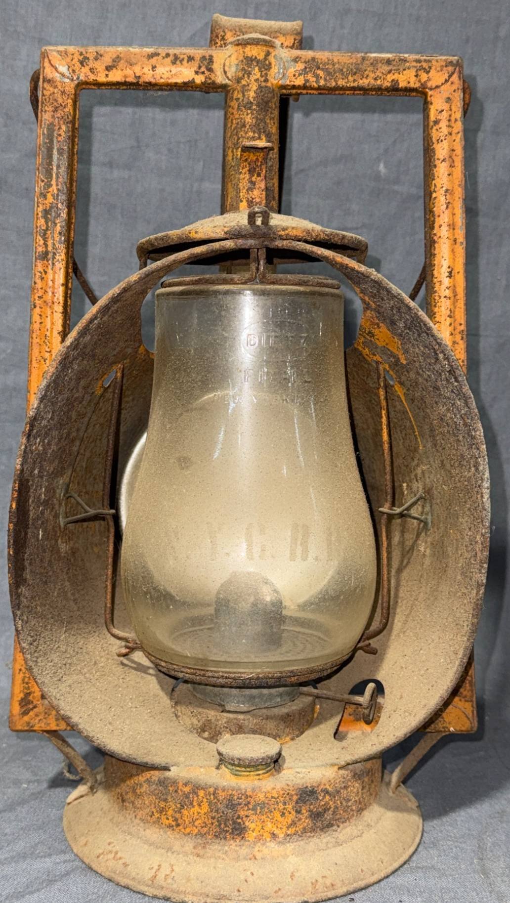 6019 Dietz Monarch Kerosene Railroad Lantern with Clear Glass Globe, Metal Frame, 14”