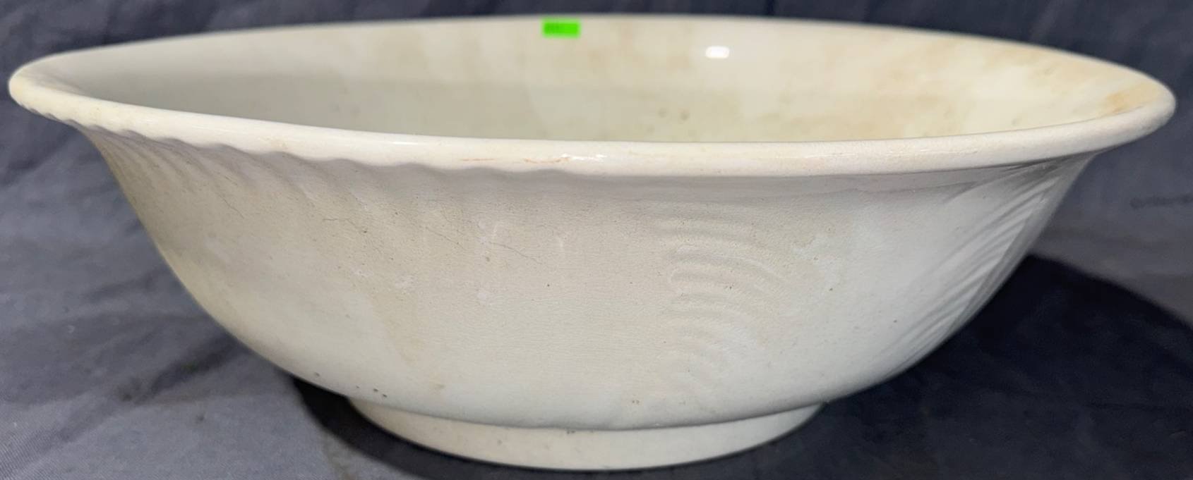 6045 ELP Co, Waco China White Bowl with Impressed Shell-Like Decorations, 15”x5” (hairline cracks)