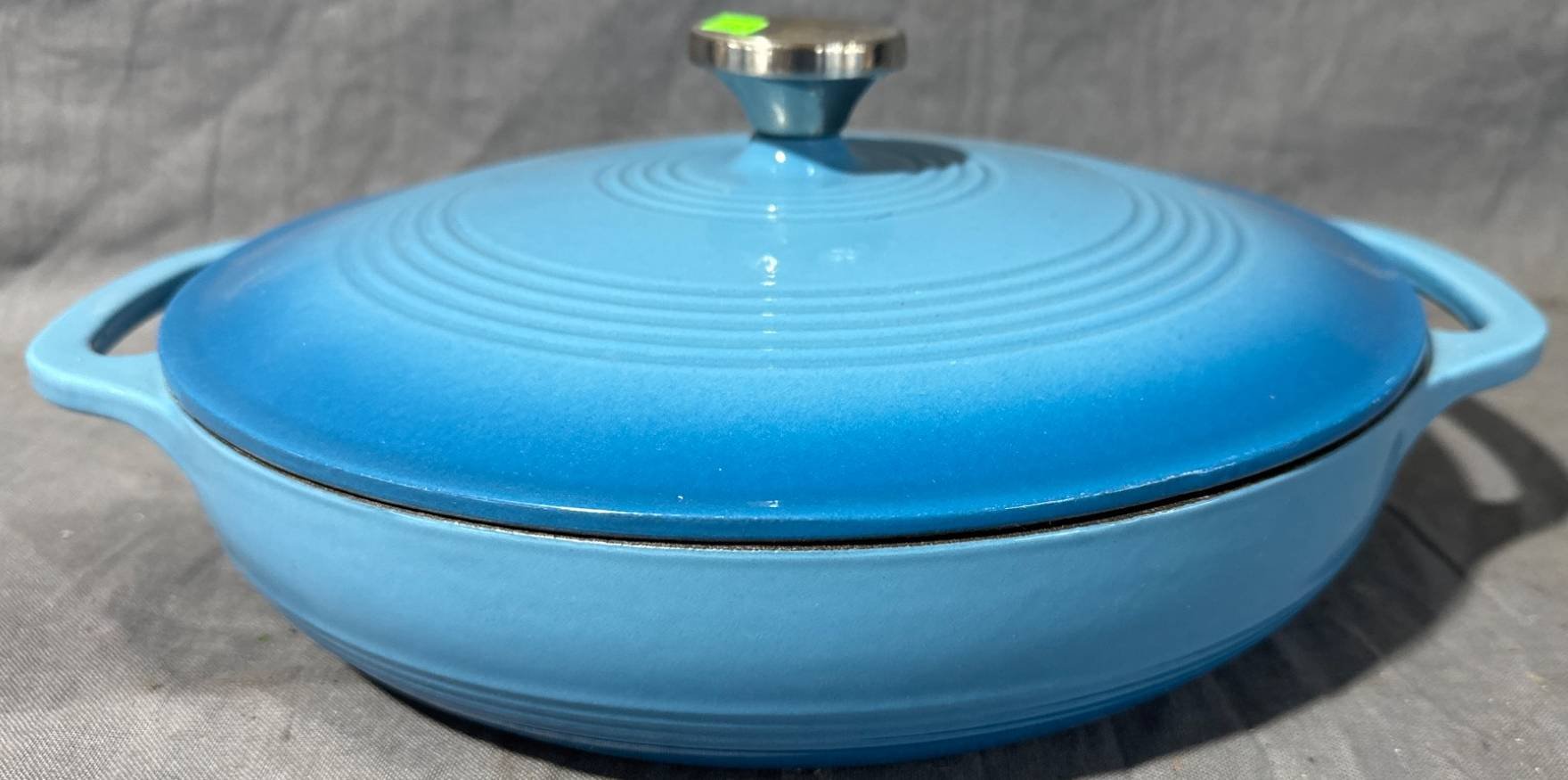 6046 Lodge 3.4 L Blue Enameled Cast Iron Covered Braiser, 12.56?×10.63?×4.06?