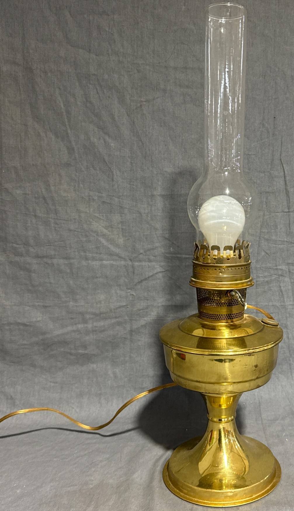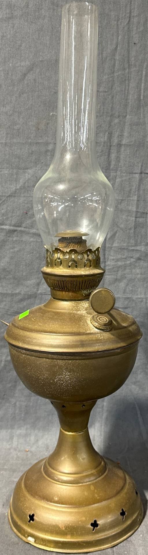 6052 Brass Oil Lamp with Engraved Eagle and Glass Chimney, 20.5” H