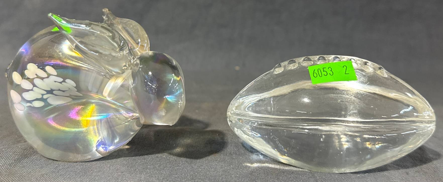 6053 2 Glass Paperweights: Animal Figure and Football, 3?, 2?x4?