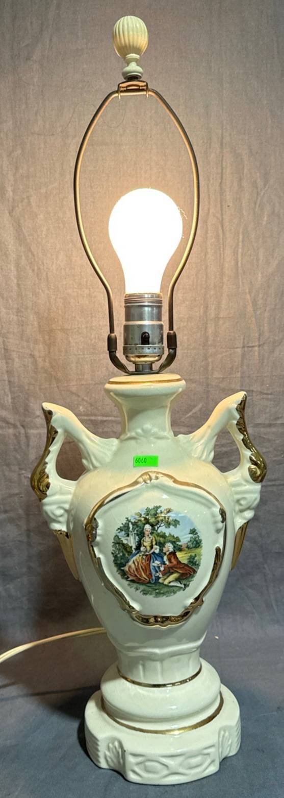 6060 George & Martha Washington Table Lamp with Vase Base Featuring Painted Scene and Gold-Tone Accents, 24”