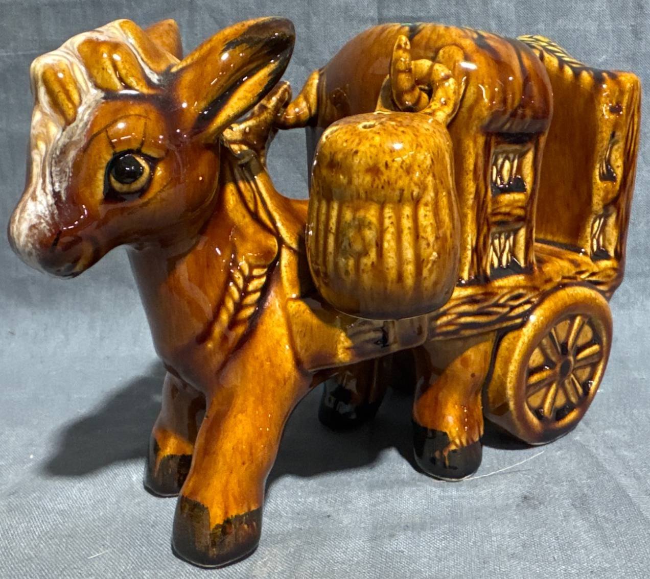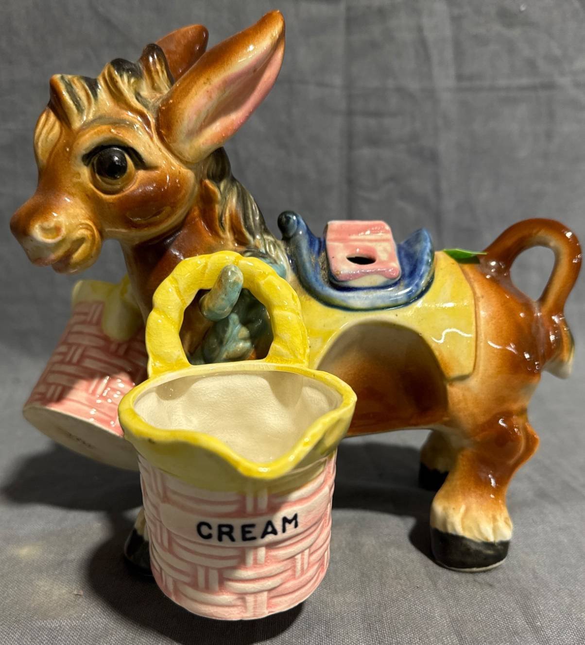 6063 Donkey Carrier with Cream and Sugar 7”x6”, (2) 3”
