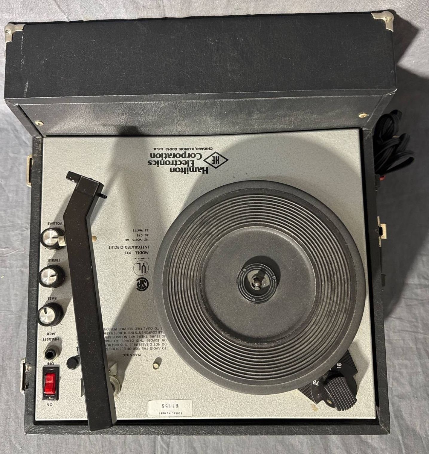 6082 Hamilton Electronics Corp. Model 935 Record Player with Case, 14”x15.5”x9”