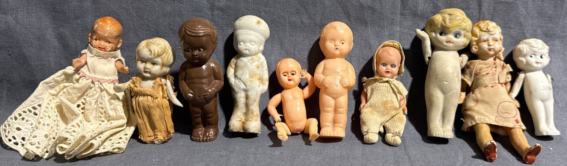 6083 12 Small Dolls inc. Porcelain & Plastic inc. Japan - 3”-5”