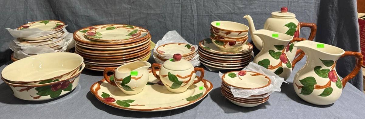 6086 59 pc Franciscan Apple Pattern Dinnerware Inc. 10 Plates 10.5”, Serving Dish 14”, Coffee Pot 8”, Pitchers 6.5”