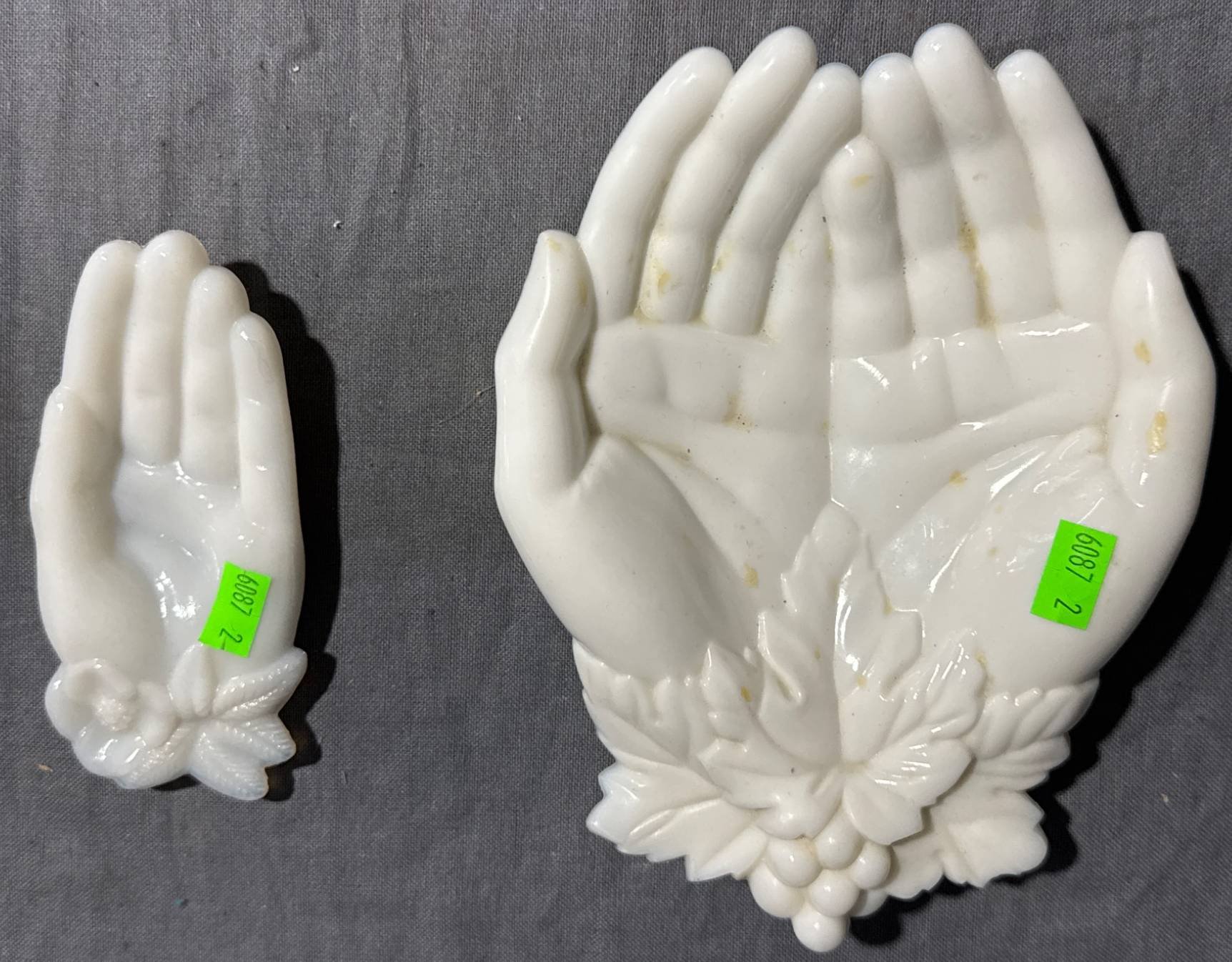 6087 Westmoreland Milk Glass Grape & Leaf Hand Dishes 5” and 7” Measurements