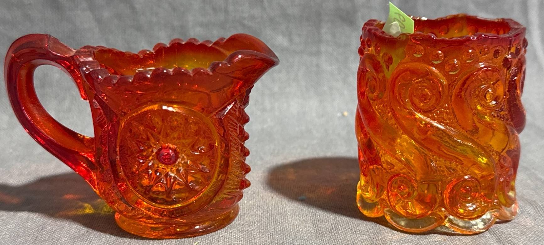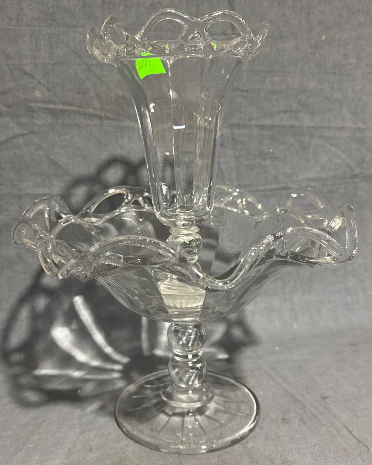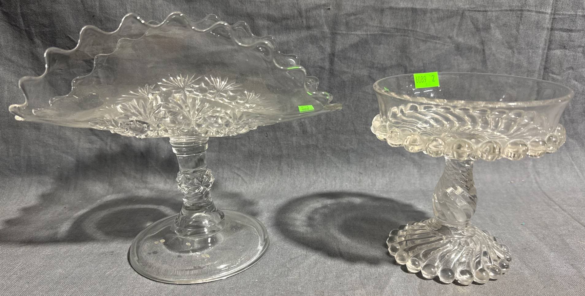 6089 EAPG Daisy Pattern Banana Pedestal Dish 6.5”x8.5” and EAPG Swirl & Ball Pattern Compote 5”x5”