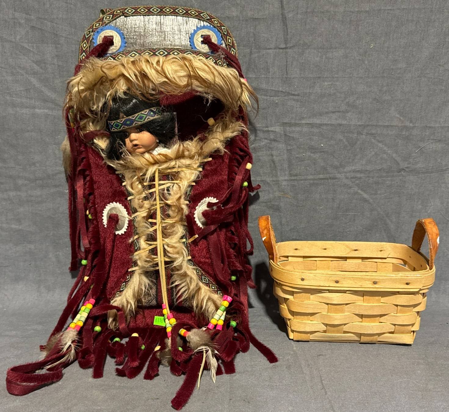 6077 Beaded Hair Combs, Pins, Beaded Native American Chief, and Metal Box 5.5”x1.5”x4” Box, 2) 4” Combs, 1) 2.5” Pin, 1) 2” Beaded Native American Chief