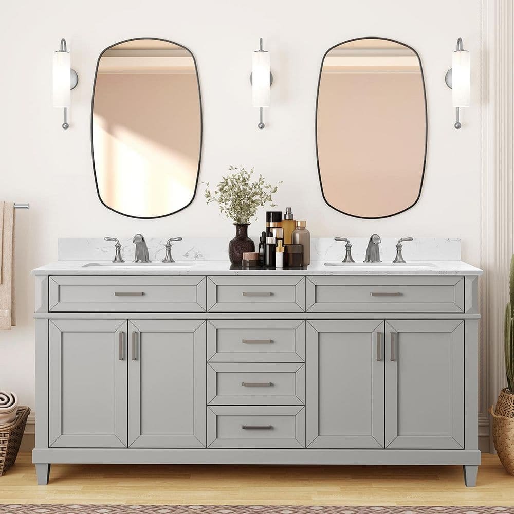 881003 HOME DECORATORS COLLECTION - Talmore 72 in. Double Sink Sky Grey Bath Vanity with White Engineered Carrara Marble Top (Assembled)