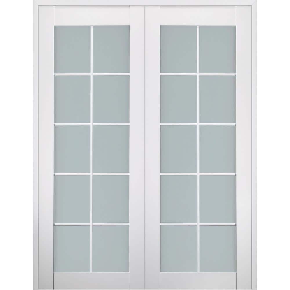 881004 "BELLDINNI - Smart Pro 60 in. x 80 in. Both Active 10-Lite Frosted Glass Polar White Wood Composite Double Prehung French Door