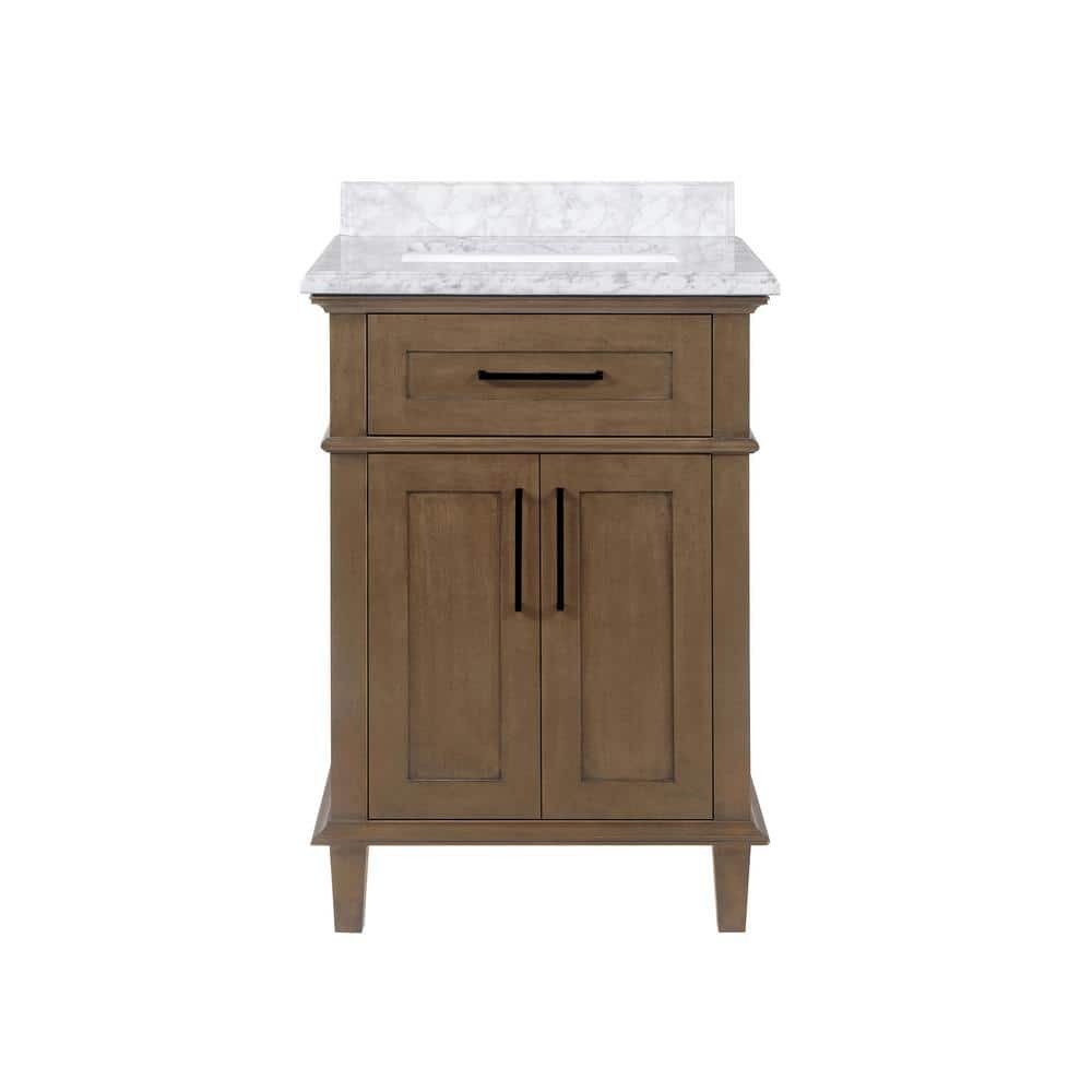 881010 HOME DECORATORS COLLECTION - Sonoma 24 in. Single Sink Almond Latte Bath Vanity with Carrara Marble Top (Assembled)