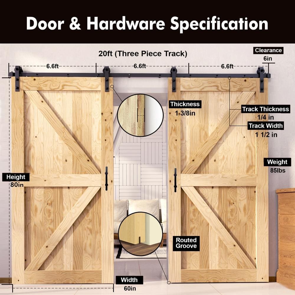 881013 HOMACER - 60 in. x 80 in. 5-in-1 Design Unfinished Frame Pine Wood Interior Sliding Barn Door - SEE PRODUCT DETAILS