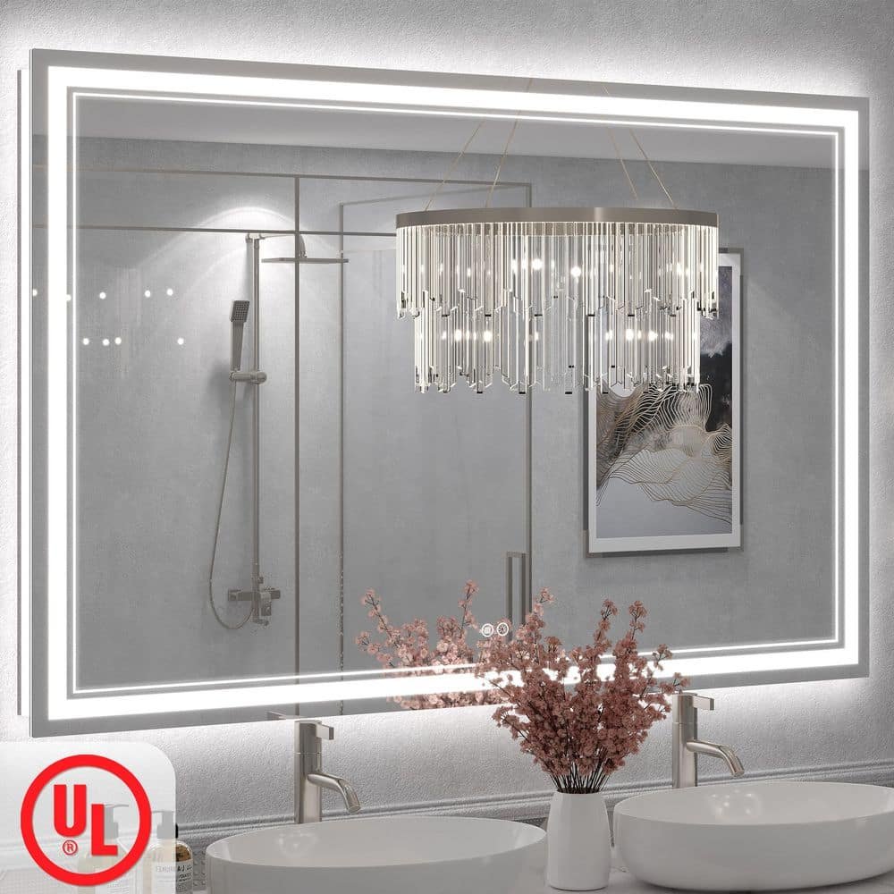 881028 APMIR - 55in.Wx36in.H Rectangular Frameless UL Certified Front and Back LED Anti-Fog Tempered Glass Wall Bathroom Vanity Mirror
