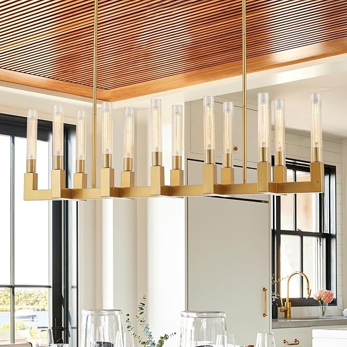 881031 TACDANDM - 54-inch Linear Dining Room Pendant Light Fixture with Glass Tube,Gold Rectangular 12-Lights Industrial Kitchen Island Lighting - SEE PRODUCT DETAILS