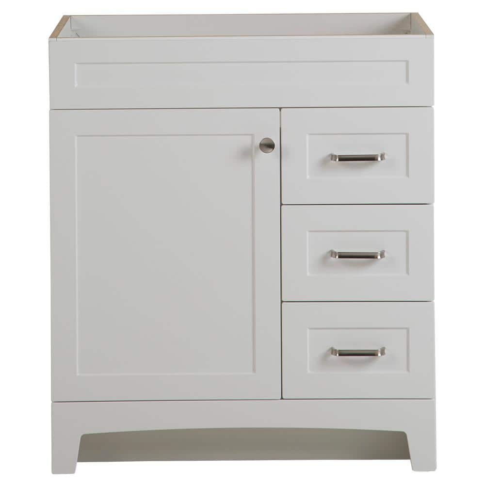 881032 HOME DECORATORS COLLECTION - Thornbriar 30 in. W x 22 in. D x 34 in. H Right Side Drawers Vanity Cabinet without Top in Polar White