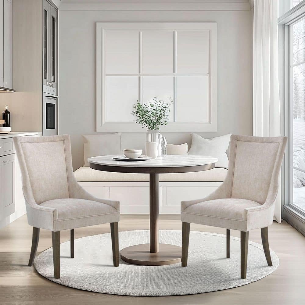 881045 CHRISTOPHER KNIGHT HOME - Elev Beige and Walnut Fabric Upholstered Dining Chairs, Set of 2 - SEE PRODUCT DETAILS