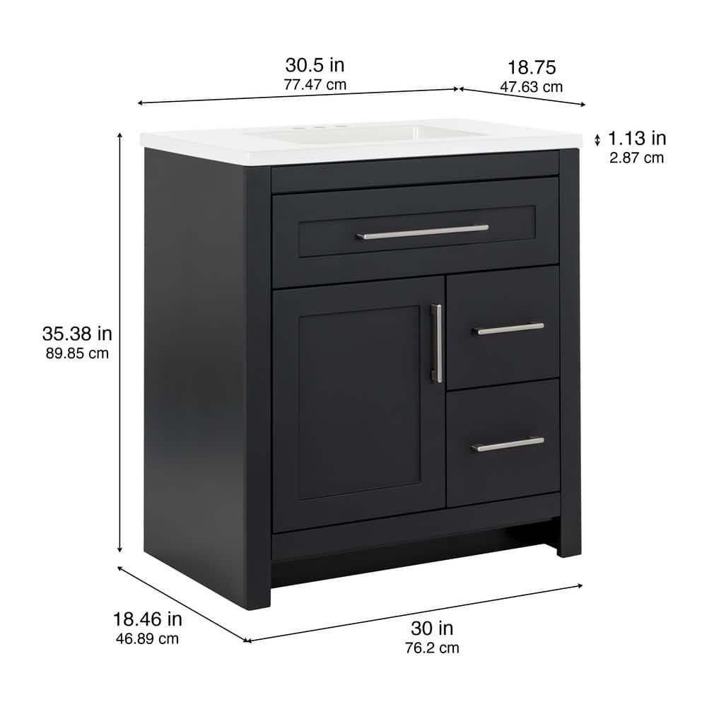 881046 HOME DECORATORS COLLECTION - Clady 31 in. Single Sink Matte Black Bath Vanity with White Cultured Marble Top (Assembled)