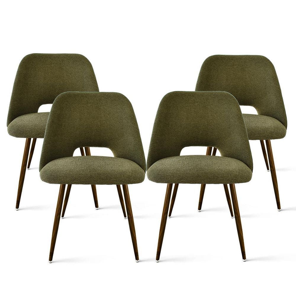 881056 LAOTIES - Upholstered Modern Cutout Back Green Dining Chair with Walnut Leg (Set of 4)