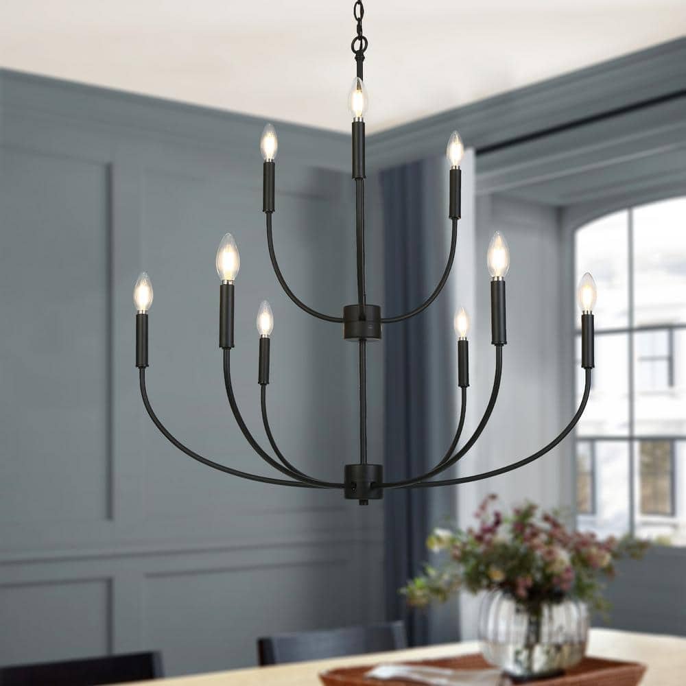881062 LNC - Transitional 32.3 in. Large 9-Light Black Candlestick Chandelier for Living Room Dining Room Pendant, LED Compatible