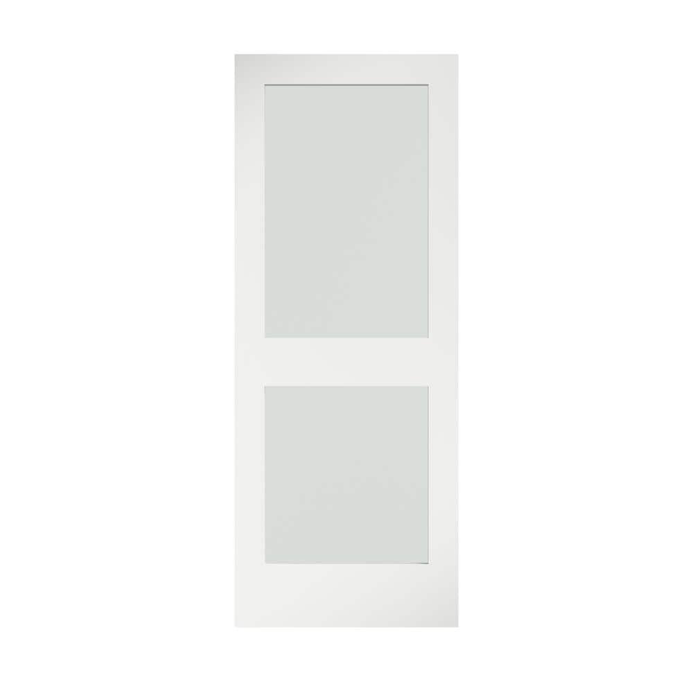 881067 " EIGHTDOORS - 32 in. x 80 in. x 1-3/8 in. 2-Lite Solid Core Frosted Glass Shaker White Primed Wood Interior Door Slab