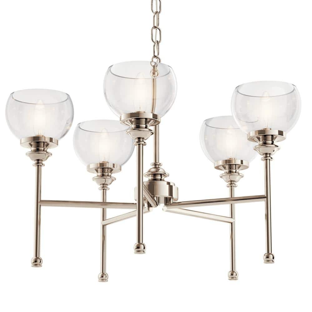 881079 KICHLER - Lecelles 24.53 in. 5-Light Polished Nickel Traditional Shaded Round Chandelier for Dining Room