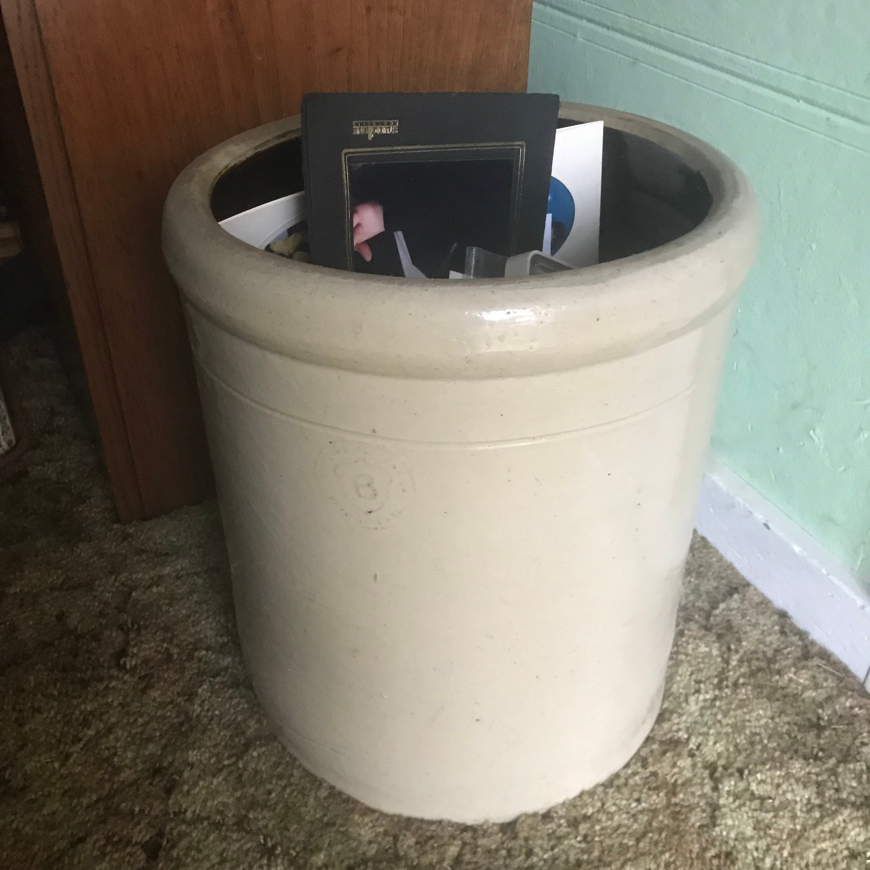 4-Stack Barrister Bookcase; Slant Front Bookcase; Lamp Table; Retro Enamel Table; Rocker; Press Back Chairs; Cane Bottom Chair; Wicker Bassinet; Childs Wicker Chair; Childs Chair; Smoking Stand; Cuckoo Clock; Oil Lamp; Vintage Mens Ties; Quilts; Vintage Canister Set; McCoy Pottery; Texas Ware Bowl; Crocks & Crock Jugs; Crock Bowl; Canning Jars inc. Blue; Planters Jars; Avon Pcs.; Lard Advertising Tin; Gal. Washtub; Scythe; Lantern; Globe; Spartan Cabinet Stereo; 45 Records; Vintage Nicca Camera; Lava Lamp; Schwinn Bicycle; Farm Toys; Sled; Lil Red Wagon; Rocking Horse; Vintage Toys & Games; Tinker Toys; Dolls; Magnetel Pool Game; Vintage Barbies & Cases; Easy Bake Oven; COINS: Peace & Morgan Silver Dollars; Cent Collections; $2.00 Bills; Mercury Dimes; Silver Washington Quarters;