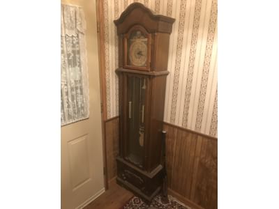Grandfather Clock; Oak Glass Front Hutch; 5 pc. Wicker Patio Set; Hospital Bed w/ New Air Mattress; Queen Bed w/ New Dream Field Mattress & Springs; Roll-Away Bed; Occ. Chair; Coffee & End Tables; File Cabinet; Horizon Treadmill; Window AC Unit w/ Remote; Card Table & Chairs; Bakers Rack; Pots, Pans, Dishes, Bakeware, Utensils, Sm. Appliances; Microwave Cart; Cookbooks; Vacuum; Bookshelves; Jewelry Box; Quilt Rack; VHS Movies inc. Disney; Books inc. Stephen King; Yardsticks; Pictures & Mirrors; Holiday Décor; Longaberger Baskets; Barometer; Home Health Care Items; OUTDOOR: Push Mower; Snow Blower; Wheelbarrow; Garden Tools; Hand tools; Asst. Hardware; Landscape Bricks;